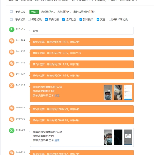 5. 监考教师要全程监控学生的考试情况,不定时拍摄学生的考试界面,及时处理考试中出现的问题,教师有权利检查学生的答题卷面。