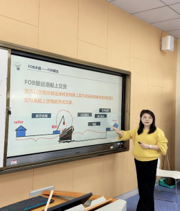 公开课上,蒋江林老师主要对国际贸易术语FOB进行了讲解。蒋老师解释了国际贸易术语的含义、性质,分析了FOB术语的内涵、买卖双方的责任、义务,同时也对FOB术语需要注意的问题进行了深入剖析,如船货衔接问题、代办装运手续、货代费用等。课程采用线上线下混合式教学模式,利用探究式教学法,贯穿式案例研讨,结合自建双语慕课及在线学习平台,激发学生的自主探究欲望和创新意识。独立思考与小组讨论相结合,并自然融入国际贸易中的思政元素。精心设计的内容、新颖独特的教学方法使得现场气氛十分热烈。