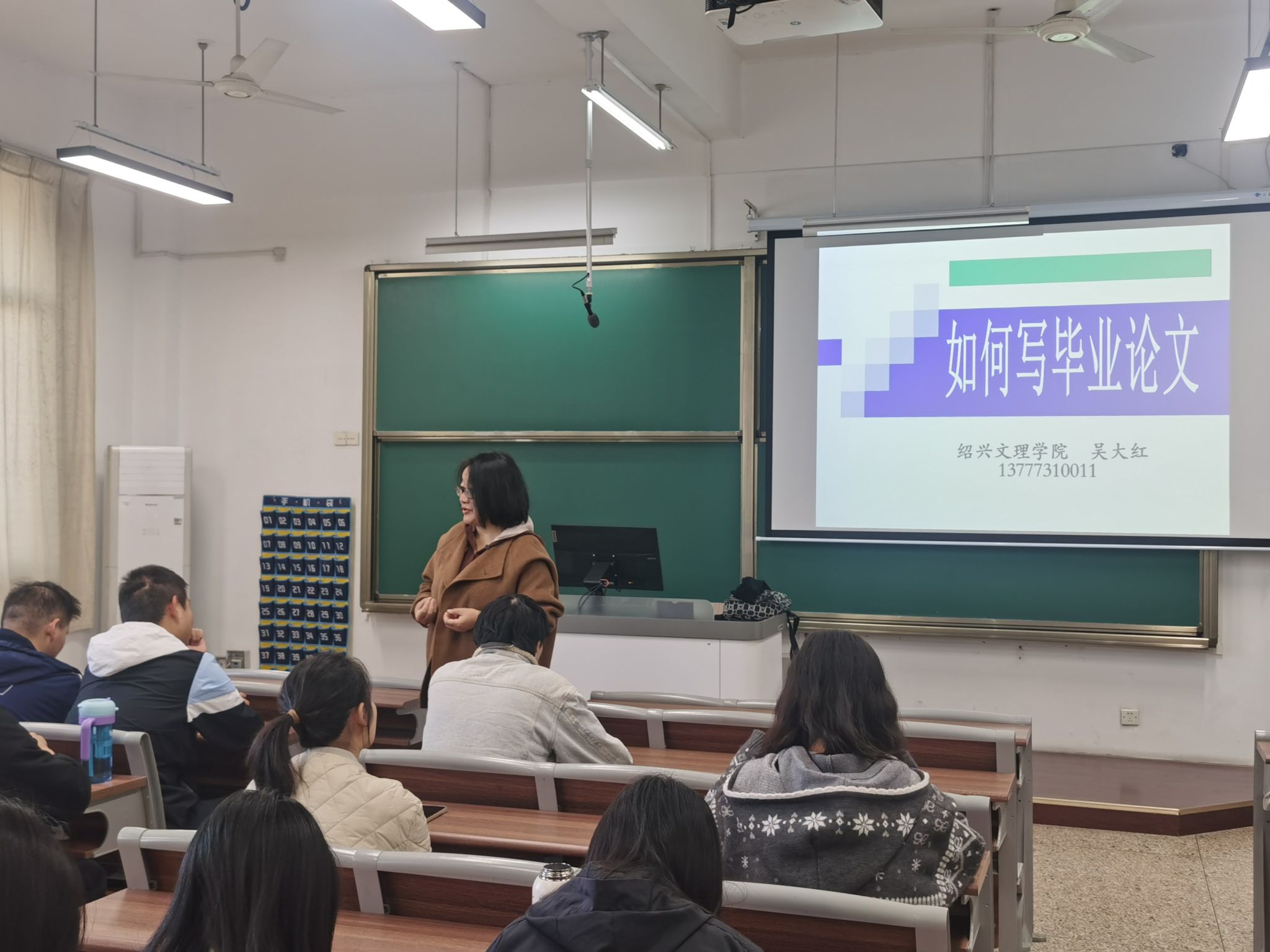 2025 年 11 月 19 日下午,绍兴文理学院硕士研究生导师吴大红副教授应邀为我财会系 22 级会计学、财务管理专业学生,带来一场主题为 “如何撰写毕业论文” 的专题讲座。