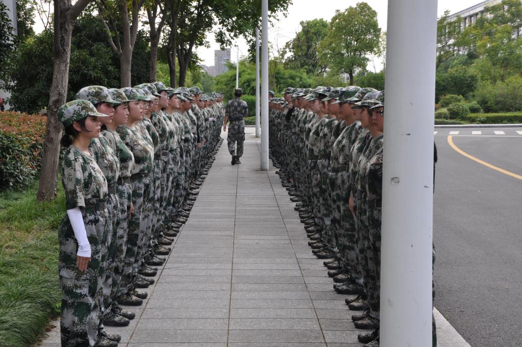 一会功夫,我们就被教官带到了操场上,今天漫长的军训开始了。首先,当仁不让的当然是站军姿了。由于外面的雨还没停,我们便站到走廊上军训。虽然地方换了,但是我们的要求没换。今天奇迹的是,我们竟然只站了二三十分钟的时间。正当我以为我听错了时,我才知道,我们今天有两项十分艰巨的任务一练习 ”分列式”