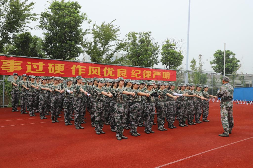 在军训中途,雨越下越大,我们连队就迁移到看台上,大家合唱了军歌“军中绿花”。在雨后,又紧凑的继续训练。时间悄然而逝。一天下来,我们充分品尝到了军训所带来的汗水和艰辛。同时也深刻的感受到我们连队刘教官的亲切和温柔。