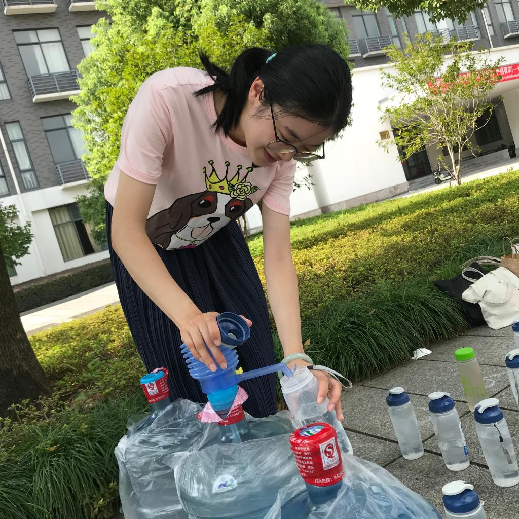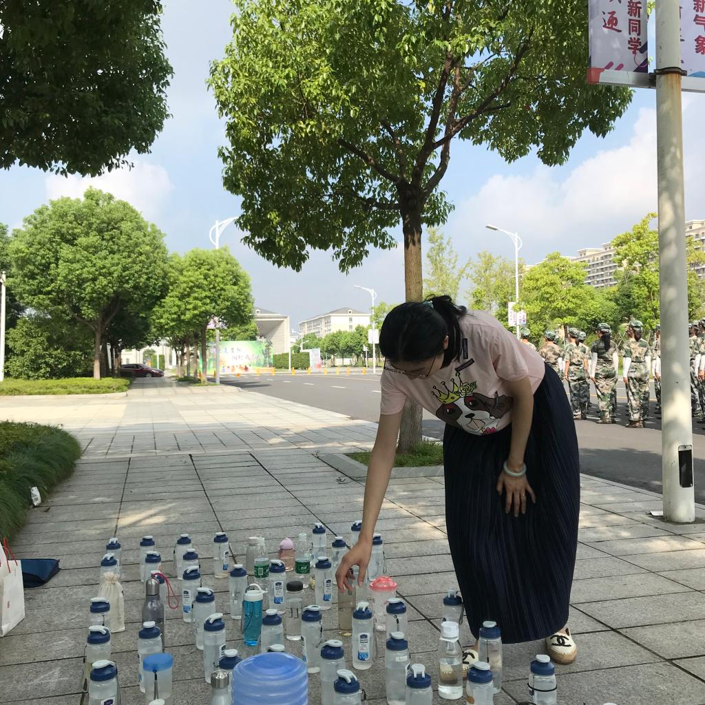 她每天早上7点半就来到训练场地上,每天都陪着大家一起训练。我们都私下说怎么老师怎么晒都这么白这么美呢!我们每天非常辛苦的训练,可是指导员过得并不比我们大家轻松,她一直陪伴在我们身边,关注同学们的一举一动。第一天的时候我们班有个同学头晕,她第一时间看到后便将同学扶到阴凉的地方给她扇扇子、倒水,还给大家买棒冰。平时还经常用相机记录下每一个珍贵的瞬间,她也是我们军训场上最可爱的人。