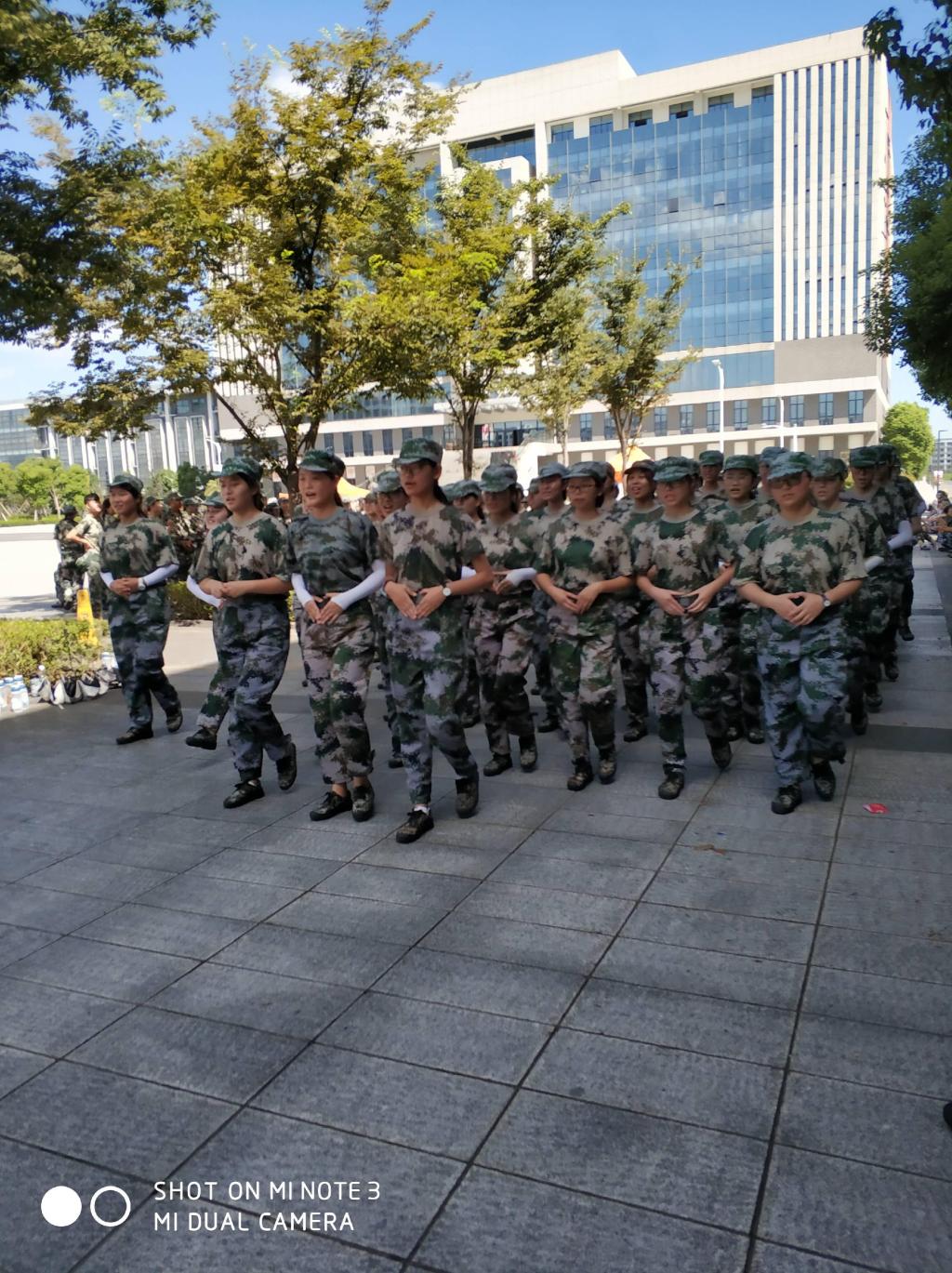 上午大家还是复习前几天的内容,然后就是踏正步,开始走的不是很整齐,经过教官的一番指挥训练,大家便做的有模有样的了。天气炎热,我们都是训练一会休息一会,保证大家的身体状况,在休息时候大家就是坐在一起练习演唱歌曲。