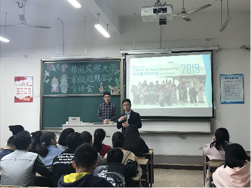 韩国庆熙大学成立于1949年,在韩国排名第五,世界排名278。庆熙大学每年都有众多学子派遣国外,同样也和世界71个国家,453所高校进行访学交流合作,世界各地众多学子去到庆熙大学进行访问与学习。庆熙大学的派遣与访问都居韩国第一。张老师不仅用充分的数据资料向同学们展现了庆熙大学的魅力,更用一些资料展现了庆熙大学独特的魔力。庆熙大学诞生了两位韩国总统以及众多的韩国优秀演员们,权志龙,孔侑等兼出自庆熙大学。
