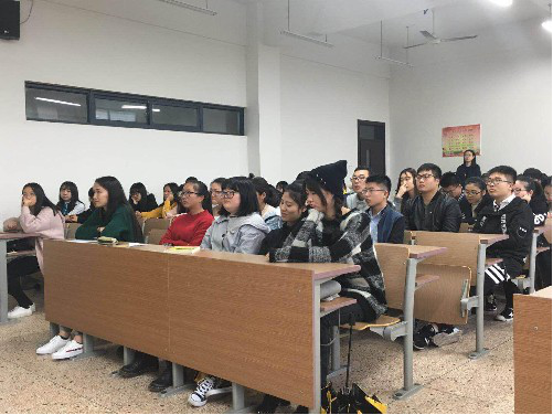 张老师简单回顾了庆熙大学与我院的合作过程,并从世界排名、人才培养等方面详细介绍了庆熙大学,欢迎大家申请两校合作的3.5+2.5MBA项目。张老师重点介绍了2018寒假冬令营项目:该项目利用同学们的寒假时间,出去真实地感受韩国文化、韩国教育的方式方法。此次项目不仅安排了40课时的专业课程、20课时的韩国文化课,而且还安排了国际名企的探访实践活动,了解国际化企业的发展历程和经营理念,感受韩国高端科技的氛围。此外,张老师结合自身在韩求学的经历,分享了满满的干货。该项目报名将于11月23日结束,希望有意向的同学积极报名,一起去感受首尔的冬雪。