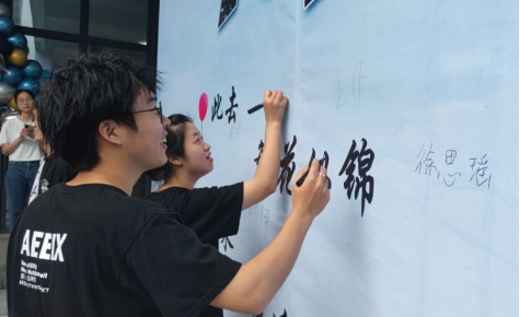 伴随着欢快的旋律,毕业生们来到欢送会现场,在签名墙上签下姓名,一撇一捺中,饱含着对四年大学生活的美好回忆。用青春定义今天的时光,用幸福计算明天的灿烂,用永远讨论未完成的梦想,用祝你成功设置各自不同的理想。