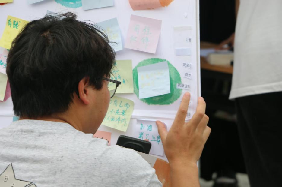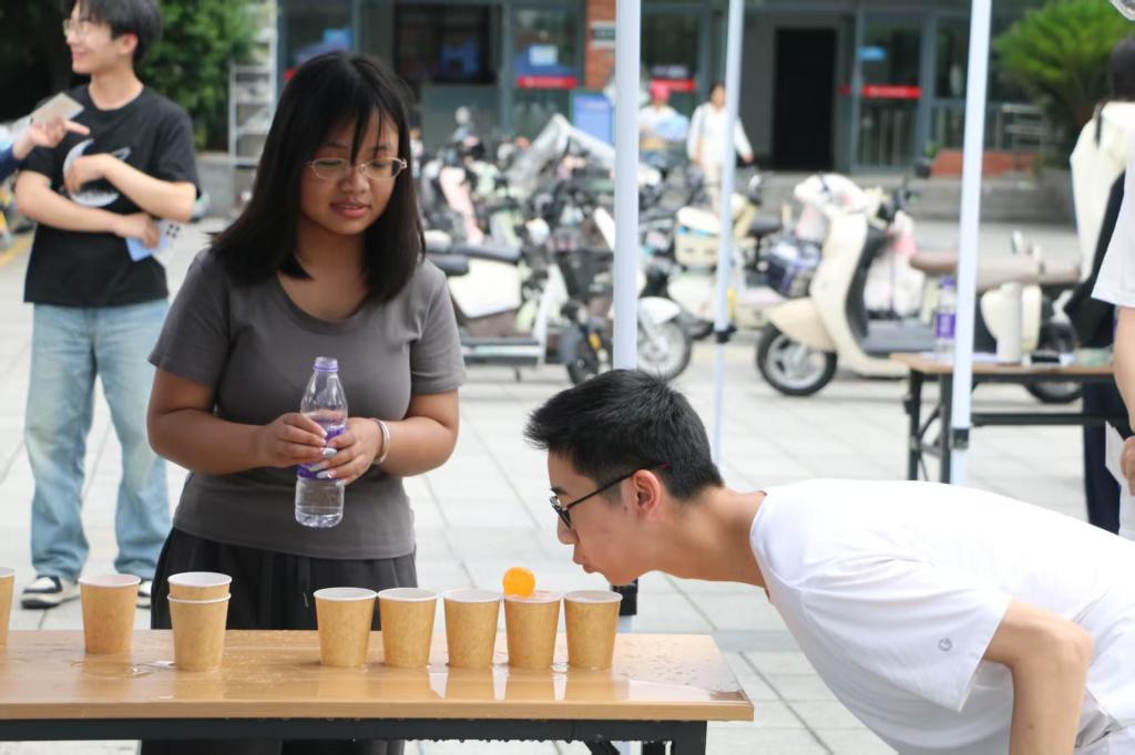 活动现场,同学们有序签到领取游园门票后,便投身于趣味十足的活动中。“撕标签” 区域内,参与者撕下展示板上束缚自我的标签,在便利贴上写下鼓励话语,大胆挑战固有标签,重塑自信。“水上乒乓球” 游戏区,乒乓球在水面跳跃,同学们屏气凝神吹动小球,每一次成功飞跃都引发热烈喝彩。“心绘小黑点” 活动里,同学们以画布小黑点为灵感,创作出独特画作,诠释 “不完美亦是美” 的理念。“心知大闯关” 现场,趣味心理学题目吸引同学们热烈讨论,在挑战中揭开心理学奥秘。