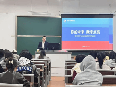 为进一步拓宽毕业生就业渠道,推动人才培养与企业需求精准对接,助力学子实现高质量就业,11 月 12 日下午,经济管理分院在 1 号教学楼 108 教室举行瑞丰银行专场宣讲招聘会。分院郦琳琳老师主持本次活动,瑞丰银行资深人力资源经理邵成刚先生受邀担任主讲嘉宾,分院 2026 届毕业生到场参与。
