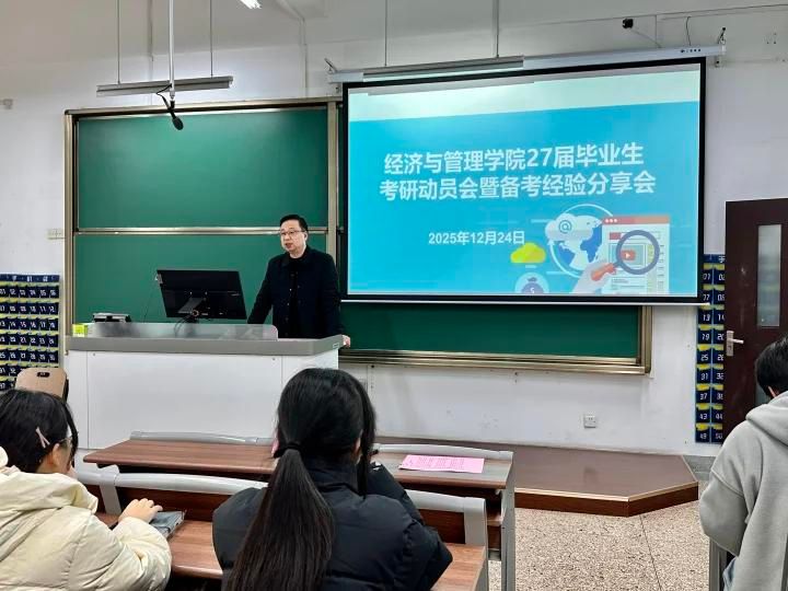 为助力2027届毕业生明晰考研方向、掌握备考技巧,12月24日下午,经济与管理学院于2号教学楼208教室顺利举办考研动员会暨备考经验分享会。学院党委副书记陈晖及全体备考学子参会,会议由黄钰淇老师主持。
