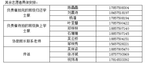 3.毕业生拍摄穿着的学士服由分院提供,但数量有限,仅限现场拍摄,若需要自行去校园拍摄的,请自己解决,因此麻烦各位毕业生拍摄完成后立即归还。
