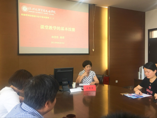 6月5日下午,经济管理分院读书分享系列讲座之二《课堂教学的基本技能》在2-414举行,文理学院教育学院退休院长、学院督导林慧莲教授应我分院邀请为教师作了精彩的学术报告。报告由分院院长杨文兵教授主持,全体教师参加。