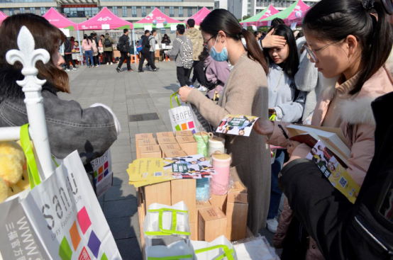 “这次的营销节又是人山人海,东西也很多,让我有些目不暇接。不过我逛得很开心,芋圆和板栗酥之类的食品都很好吃,一些坐垫,围巾这类暖冬神器正是我们所需要的。”购买商品的学生章慧婷对记者说道。