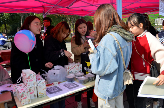 叶访春、部分职能部门负责人、分院相关负责人以及部分指导老师都亲临现场,为各团队打分并提出了宝贵的建议。为期两天的营销节里,共有38个参赛队伍,5个入驻商家。他们分别来自各分院以及越秀外国语学院,在元培掀起了一场“购物狂欢”!此次活动经营的商品范围涵盖食品、文具、书籍、绿植宠物、日用百货小商品五大类。4号店铺“幸运盒子”用独特新颖的销售模式吸引同学们的好奇心。27号“芋米”迎合学生们的需求,推出送货上门服务,充分运用自己的智慧拓宽产品市场。36号店铺港未老香港主打香草冰淇淋泡芙、爆浆巧克力蛋糕等甜品,精致的外观和优质的口感吸引了一批又一批食客购买。