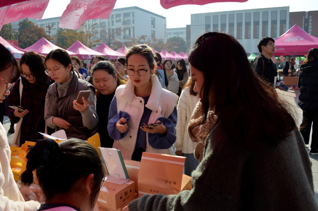 11月28-29日,营销节在图书馆前广场持续进行,学院广大教师学生热情参与,现场人气高涨,销售火爆,被师生们亲切地称为“元培双十一”。