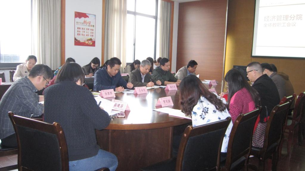 11月7日下午,分院召开全体教职工大会,布置落实近期重要工作。会议由分院党总支书记陈晖主持。