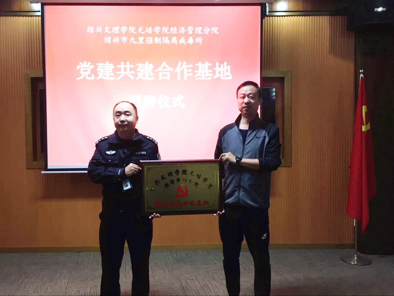 近期,经济管理分院党总支部负责人以及相关人员走访了嵊州市“五水共治”领导小组办公室、绍兴市九里强制隔离戒毒所、绍兴市社会福利中心以及绍兴市镜水社区,且分别与嵊州市“五水共治”领导小组办公室专职副主任邱晓军、绍兴市九里强制隔离戒毒所政委许兵、绍兴市社会福利中心(主持工作)副主任张宏声以及东浦街道镜水社区党支部书记兼主任胡菊萍签订了党建共建合作协议,举行了授牌仪式。
