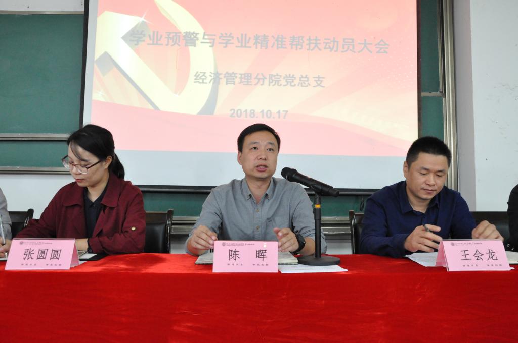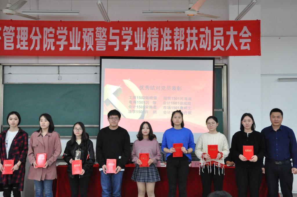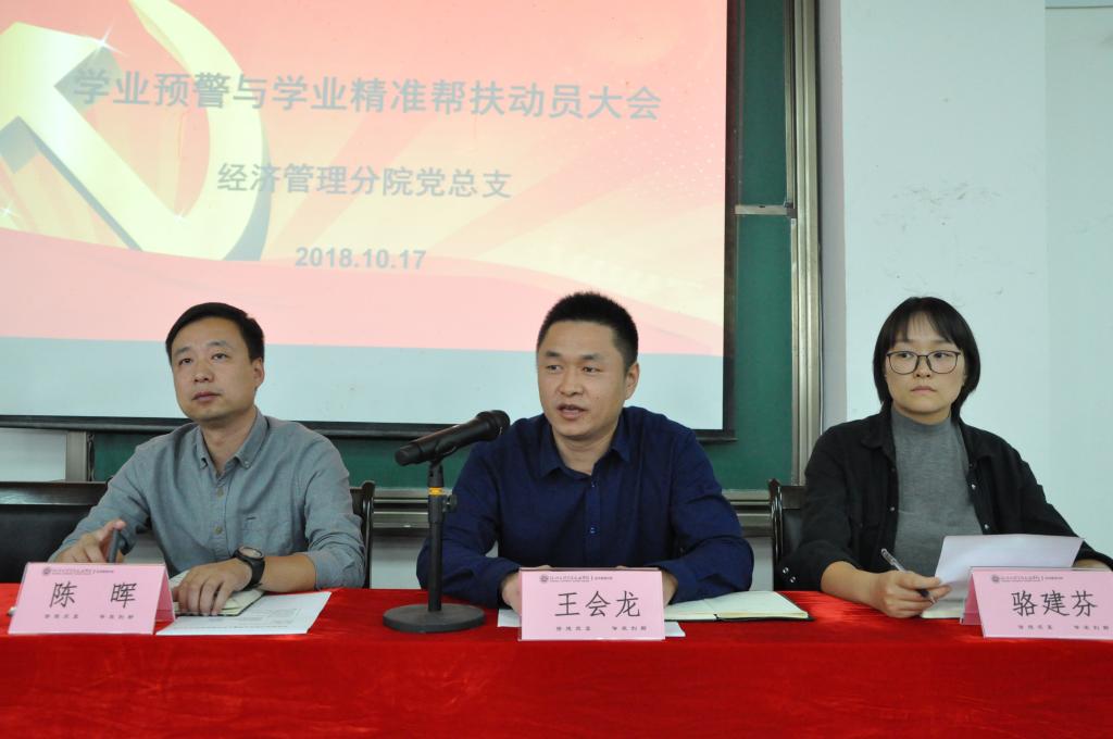10月17日下午,在1号教学楼310室经济管理分院开展学业预警与学业精准帮扶动员大会。分院党总支负责人、教学工作负责人、党员教师代表、95名学业预警学生和95名结对帮扶党员参加动员大会。