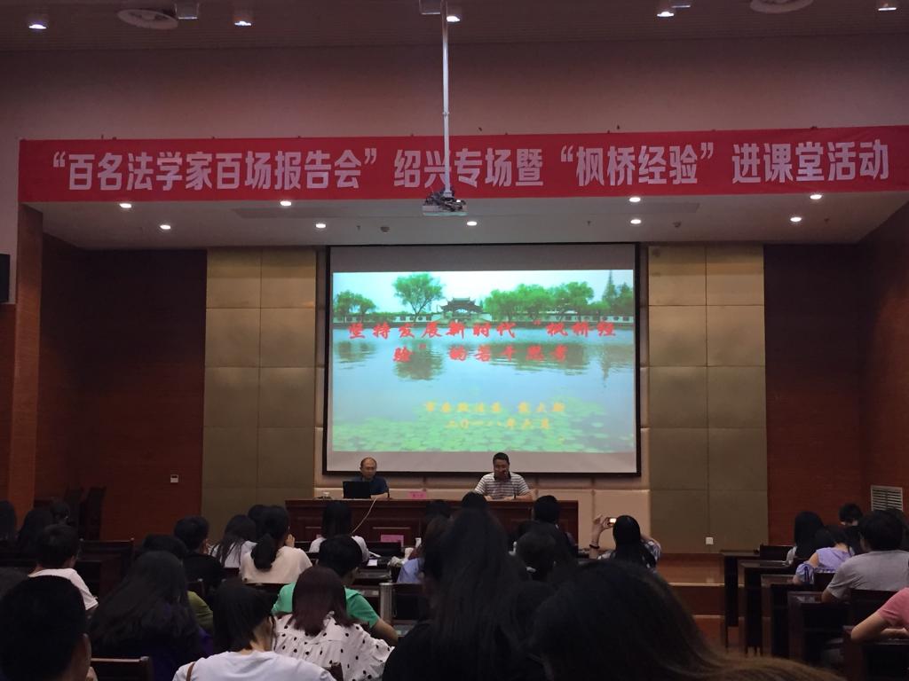 讲座围绕什么是枫桥经验、枫桥经验从哪里来、有什么用、如何创新、到哪里去等问题展开。戴大新主任指出:今年是改革开放40周年,是毛主席批示学习推广发展枫桥经验的55周年,也是习近平主席指示坚持发展枫桥经验的15周年。在长期的实践中,枫桥经验具有及时化解纠纷、维护基层和谐稳定、引领基层社会治理、促进经济社会发展的重要作用,深刻体现“实事求是”、“一切从实际出发”的党的思想路线,体现“以人民为中心”的马克思主义群众观、“两点论”和“重点论”相统一的唯物辩证观及“创新”、“与时俱进”的科学发展观等。