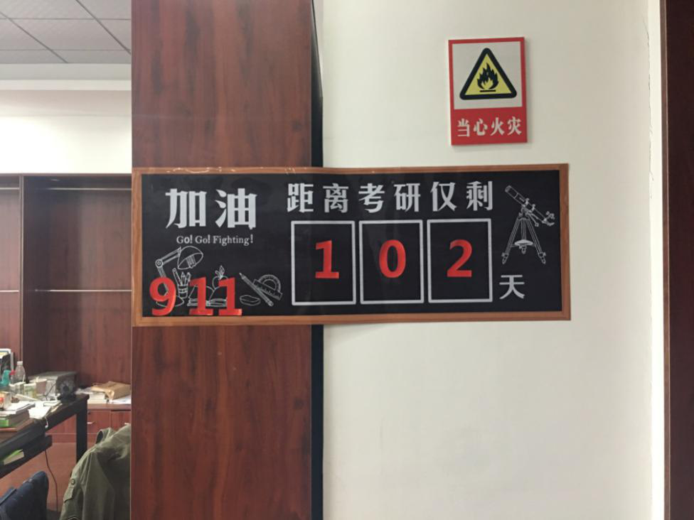 距离研究生考试的时间越来越近,我分院的考研室充满了奋斗的气息。今日宣璐莎老师在考研室为同学们贴上了“倒计时”牌,让同学们意识到时间的转瞬即逝,激励大家好好学习,为考研做好扎实准备。