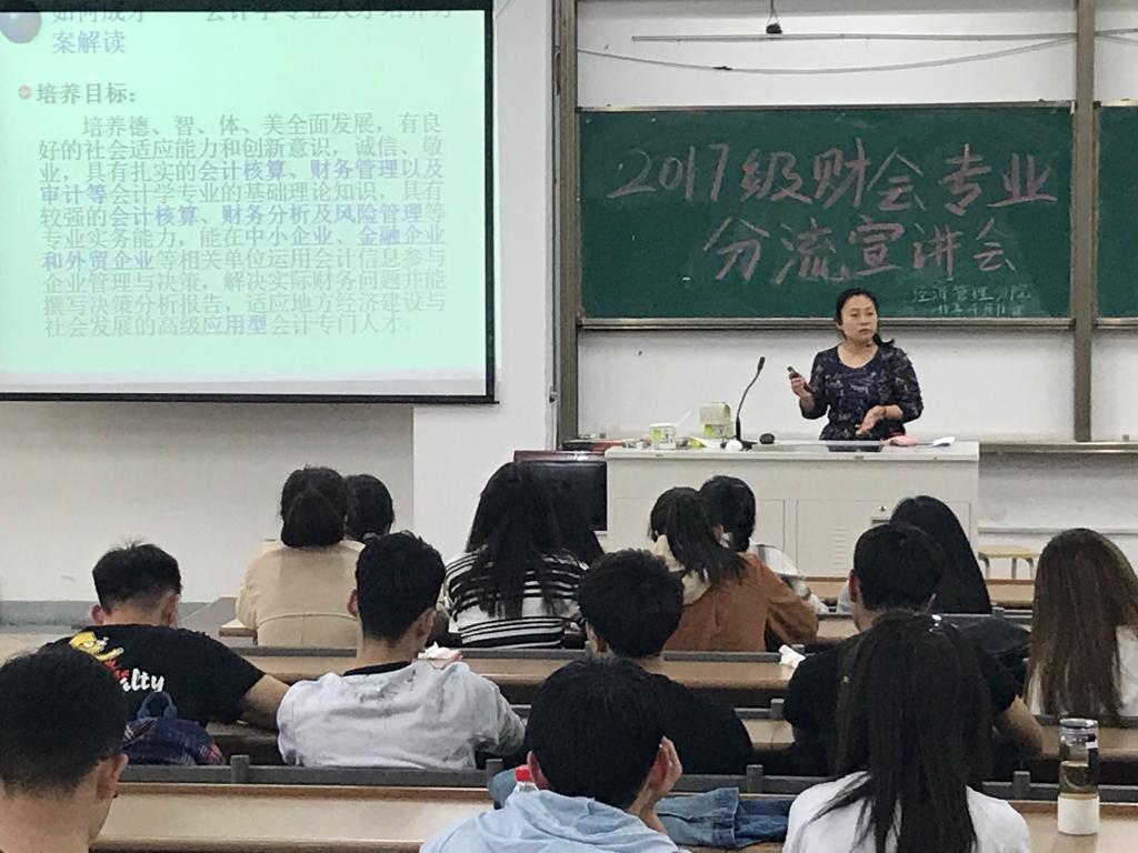 4月11日中午,我分院于经管南楼207教室举办了2017级财会专业分流宣讲会。会议由张伟老师和閤晓林老师主讲,2017级财会类专业的全体学生参加了本次会议。