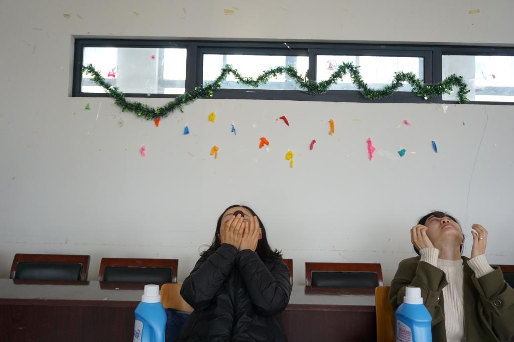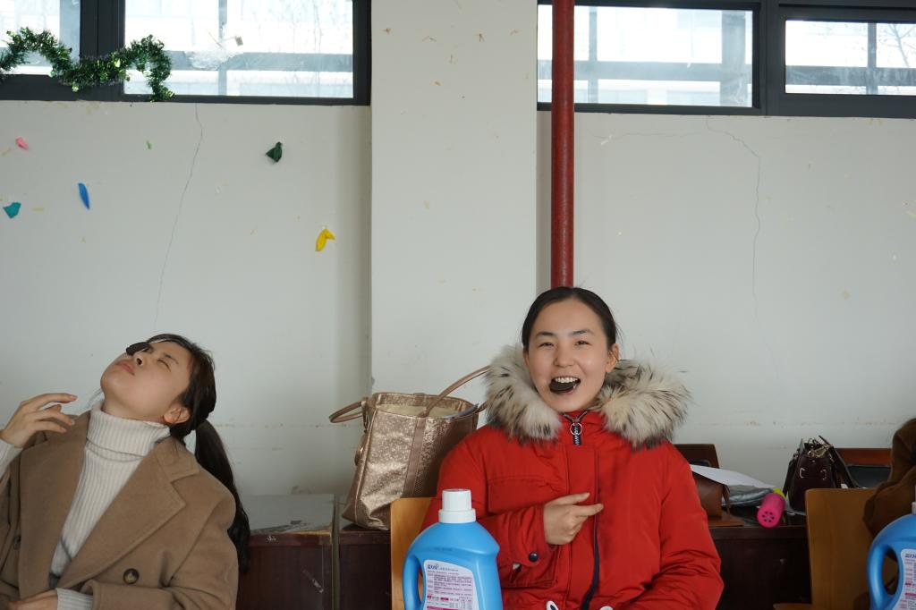 今年的庆祝活动更加注重老师们的协作性和趣味性,分院女教师们分成三组进行比赛。趣味活动主要包括3个项目:“害你在心口难开”、“挤眉弄眼吃饼干”、“歌曲名抢答”。活动现场,老师们全神贯注,加油助威声、欢呼声不断。
