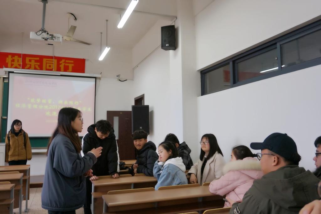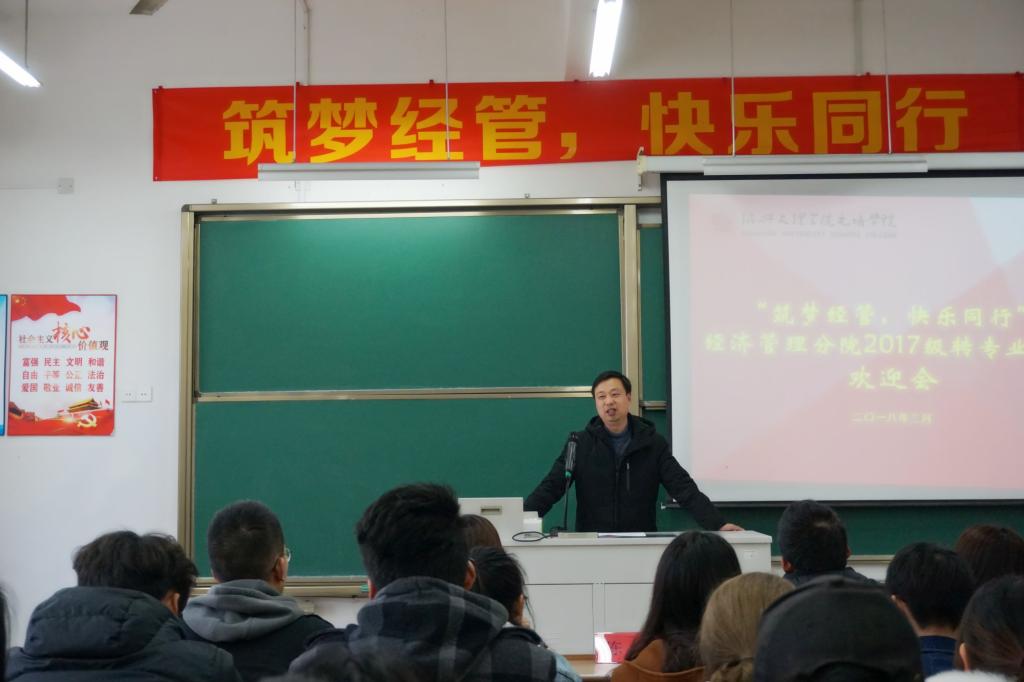 会上,2017级班主任代表发言。新学期、新专业,面临着各种新的种种挑战和压力,他对同学们提出了几点建议:选择经管,做一名快乐经管人,积极参加各项活动;快乐经管人要做好快乐规划,指定阶段性目标;正确处理好新班级成员间的关系,与班级成员融洽相处。