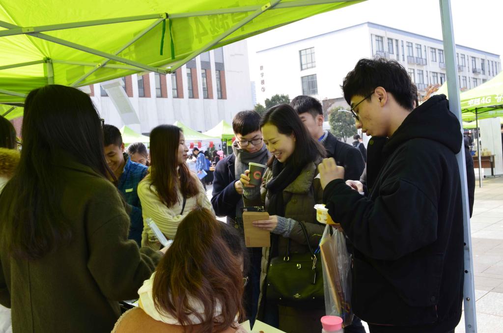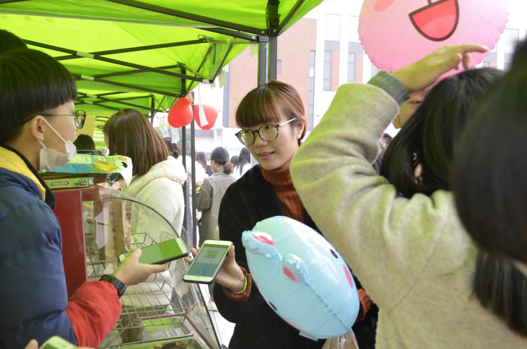 在历时两天的实体营销环节期间,北广场上人头攒动,商铺前更是摩肩接踵。各参赛团队与入驻商家依据销售情况,适时调整营销策略。5号店铺“蒸口仙气”聘请专业的烧饼师傅,现场烤制烧饼,极大刺激了潜在消费者的购买欲望。26号商铺“冬日一点暖”随机发放各式小礼品,从而吸引顾客。9号商铺“芝士就是力量”则依靠话筒效应,喊出响亮口号,在北广场上独树一帜,引人注目。这时的12号店铺“有趣”也不甘示弱,推出预定打折,送货上门福利,深刻把握学生群体的诉求,尽显营销智慧。而部分非食品类商家则引入创意手工概念,将生活必备物品与当前流行的“纯手工”相结合,以此赚取自己的第一桶金。更有相关指导老师亲临现场,不吝支持。