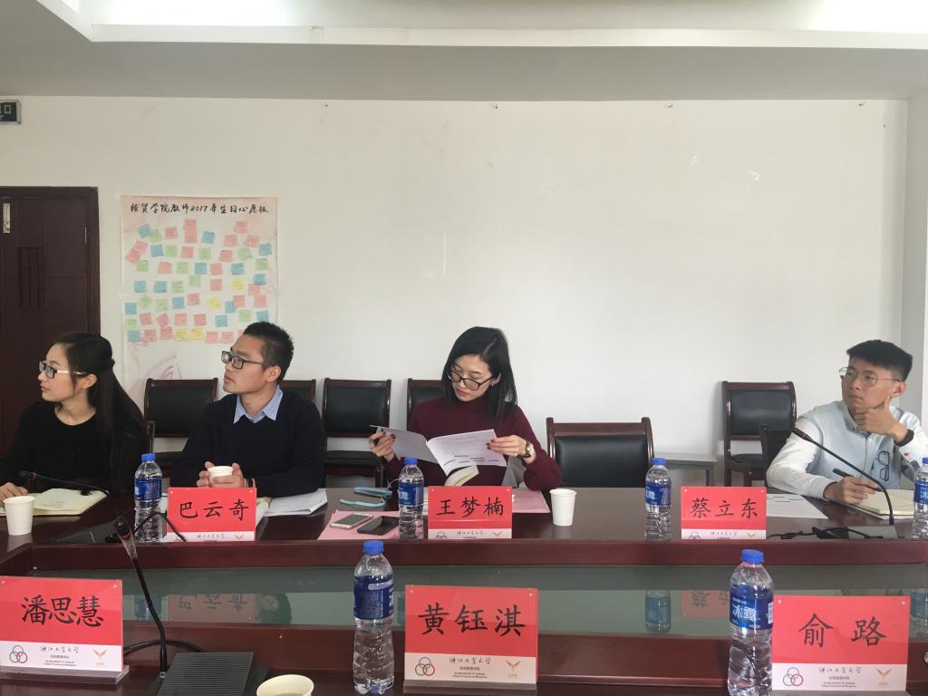 为了更好的推动经济管理分院的党建、学生管理、创新创业和新闻宣传工作等的改革创新,促进分院“快乐经管”的人才培养目标, 11月23日下午我分院学工办主任俞路携学工一行赴浙江工业大学经贸管理学院进行调研学习。浙江工业大学经贸管理学院职业发展中心主任、学工办主任王梦楠等老师进行了接待,并且准备了充分的学习资料和PPT展示。