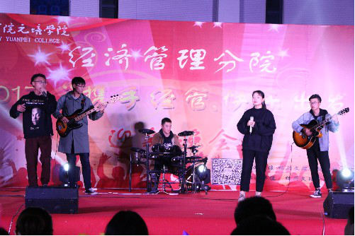 迎新晚会在痛仰音乐社和元培音乐爱好者协会充满激情的音乐《real talk》中拉开了帷幕。之后,我分院党总支书记陈晖致辞,陈书记对2017级新生的到来表示热烈的欢迎,并从“党的十九大”着手,强调作为经管人,要培养自身的人文精神,注重个人能力的提高,心怀家国情怀,用行动去践行十九大精神。