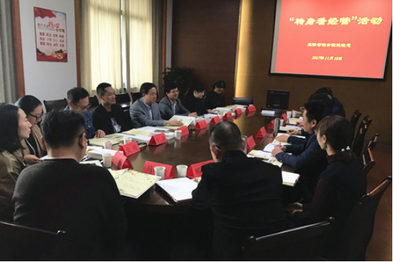 为了贯彻落实学院“修得求真,传承创新”校训,培养具有“经济学思维,管理者素养”的人才,经济管理分院于11月10日下午在2-414会议室举行了主题为“忆往昔,浓浓经管情”的转身看经管活动。学院院长、党委办公室主任王学炎、资产管理处处长胡利胜、建筑工程分院党总支书记郑江、纺织服装与艺术设计分院党总支书记葛丛栩等原在经管分院就职、现调离到学院各部门的老师,以及经管分院院长杨文兵,部分分院教职工参加了此次座谈活动。会议由经管分院副院长王会龙主持。