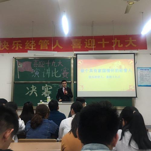 9月28日上午,在距离十九大召开还有19天之际。绍兴文理学院元培学院经济管理分院在教学楼1-108开展主题为“喜迎十九大,做快乐经管人”的演讲比赛。比赛不但展现我院学子们的精神风貌,更是表达了对党“十九大”胜利召开的深切期盼。