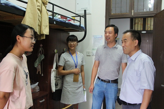 在看望新生的过程中,冯院长与我分院新生亲切交谈,对新生们的到来表示欢迎,他特别询问外省同学在绍兴生活是否习惯,并为同学们的未来生活提出了建议。冯院长指出遇到问题一定要及时地联系并询问班主任、辅导员老师以寻求最好的帮助。分院院长杨文兵走进一间间学生寝室与新生们进行亲切的交谈,询问他们的家乡情况、兴趣爱好以及到校后的感受,耐心地向他们介绍大学生活和我分院特点。陈晖书记询问家长和新生在寝室入住、整理方面的问题,并让分院学工办老师们积极与书院、后勤部门联系,落实问题、解决问题,尽量做到让每一位新生满意入校。新生班主任、班助来到每一位新生寝室,和新生们拉起家常,了解自己班级同学的特长、困难以及对今后大学生活的需求。新生们陆续表达了自己对大学生活的憧憬,希望自己的大学生活过得充实而有意义。