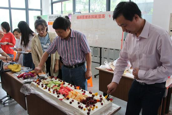 欢送会上,我系为每一位到场的毕业生准备了精美可口的蛋糕、水果、糖果、一些小零食和印有学校照片的明信片作为小礼物,分发给到场的毕业生。系主任杨文兵老师和系党总支书记陈晖老师为毕业生们切蛋糕,整个过程温馨而美好,欢乐且宝贵。在签名墙上,记录了毕业生们在元培学院里青春的印记,大家都将自己的姓名留在了这里,留在了这个时刻。我系的志愿者们也在各个宿舍楼下帮助学姐学长搬运行李,尽自己所能,为他们送上最后一点关爱。快乐的时间总是那么短暂,纯真的岁月总有结束的一天。愿你们谨记母校的校风校训,秉承学院的优良传统,心系元培,情系经管,不忘师恩,乘风破浪。