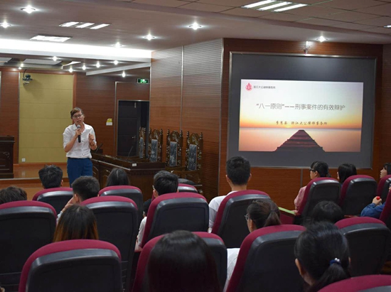 其次,季律师以大量丰富详实的案例,阐述了刑事案件中常见的法律问题,分析了律师在从事刑事辩护的职业环境和风险,向同学们讲述如何建立客户关系,积累辩护技巧,将法庭上的现场辩护搬到了课堂。“一切没有执行力的理念,都是耍流氓”,她建议同学们在学校期间就能认识律师的职责使命,培养法律素养,才能在日后的法律工作中得到提高和进步。
