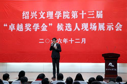 4月27日下午,校第十三届“卓越奖学金”颁奖典礼在铁城科教馆报告厅隆重举行。该奖项以倡导“摈弃浮躁、拒绝平庸、追求卓越”的校园精神为主旨,是绍兴文理学院学生最高荣誉,主要奖励在品德、学习、文艺、体育、社会工作等某方面取得卓越成绩的在校生。为充分展现元培学子的卓越风采,确保公开、公平、公正,学院专门成立了评审领导小组,在各系推荐优秀学子候选人的基础上通过推荐展示会,层层筛选,反复比较,集体评议,最后确定了我系会计1301班学生王磊作为校卓越奖学金候选人。
