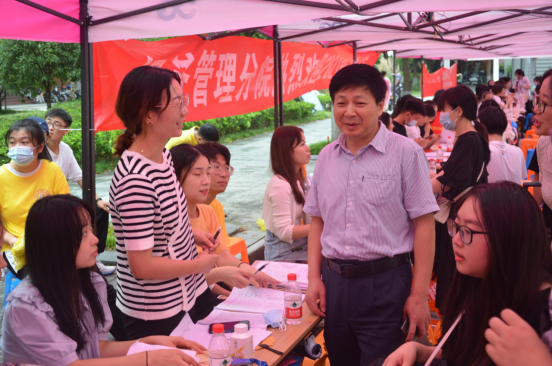 与此同时,分院杨文兵院长,党总支陈晖书记及各级领导在百忙之中前来视察迎新工作,询问迎新工作的开展情况并对工作人员给予鼓励。