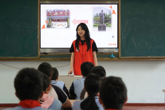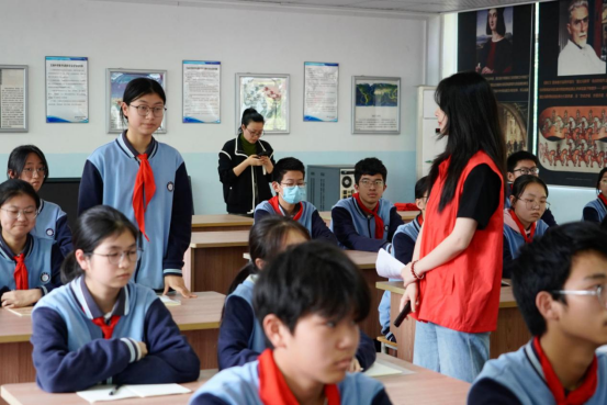 分院宣讲团以五四青年节为契机,以范文澜先生的事迹为切入点,在课堂上用生动的语言和有意义实例向文澜中学的同学们阐述了青春担当的核心价值---爱国和进步。