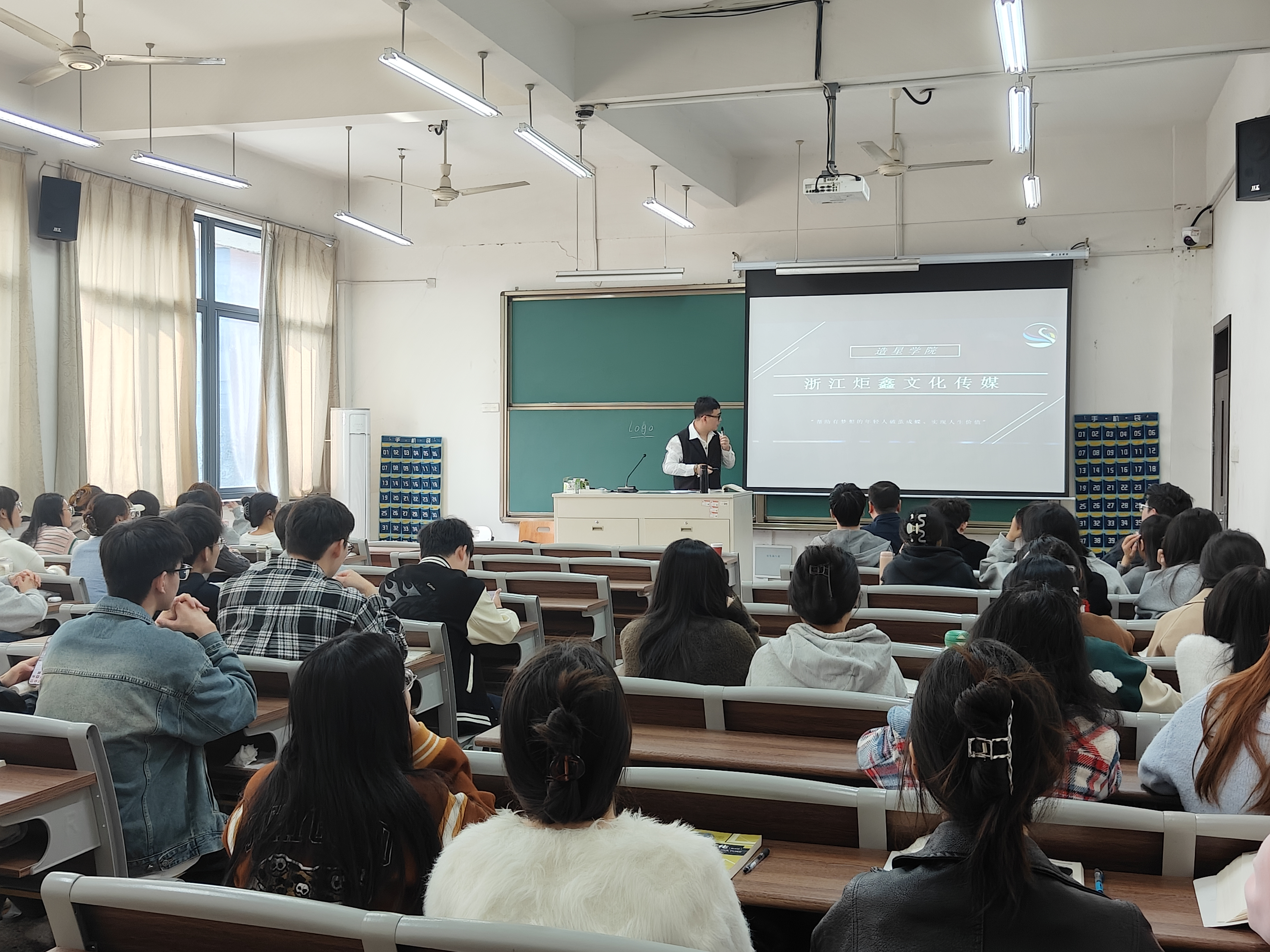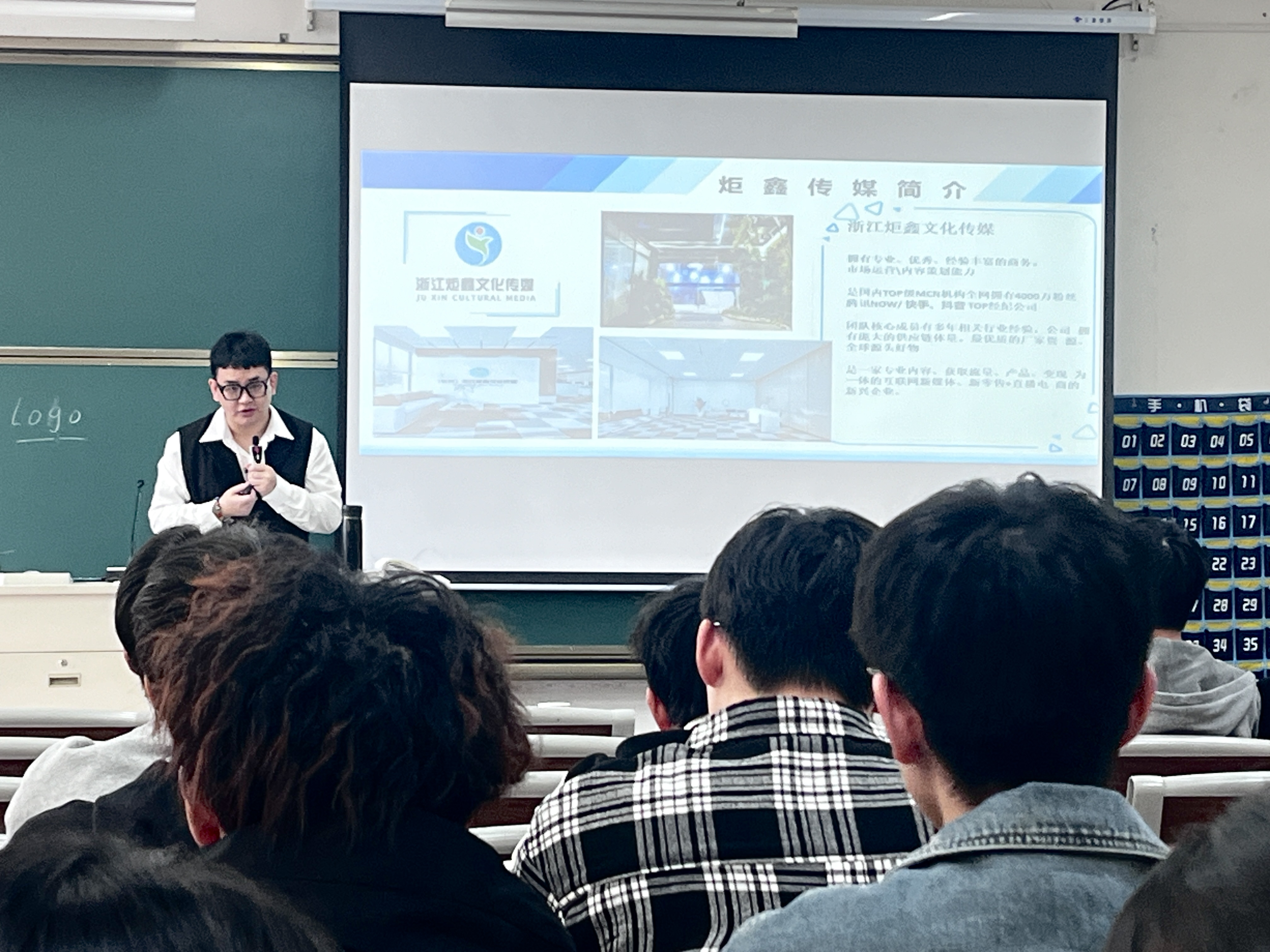 10月29日,我分院工商管理 2321 班及 2322 班迎来了一场极具意义的课堂,主题为 “新媒体行业的深耕与创新”。此次“行业人才进课堂”邀请到了浙江炬鑫文化传媒的创始人兼 CEO 杨文钢总经理,他以丰富的行业经验和独到的见解,为同学们带来了一场知识与智慧交融的精彩授课。