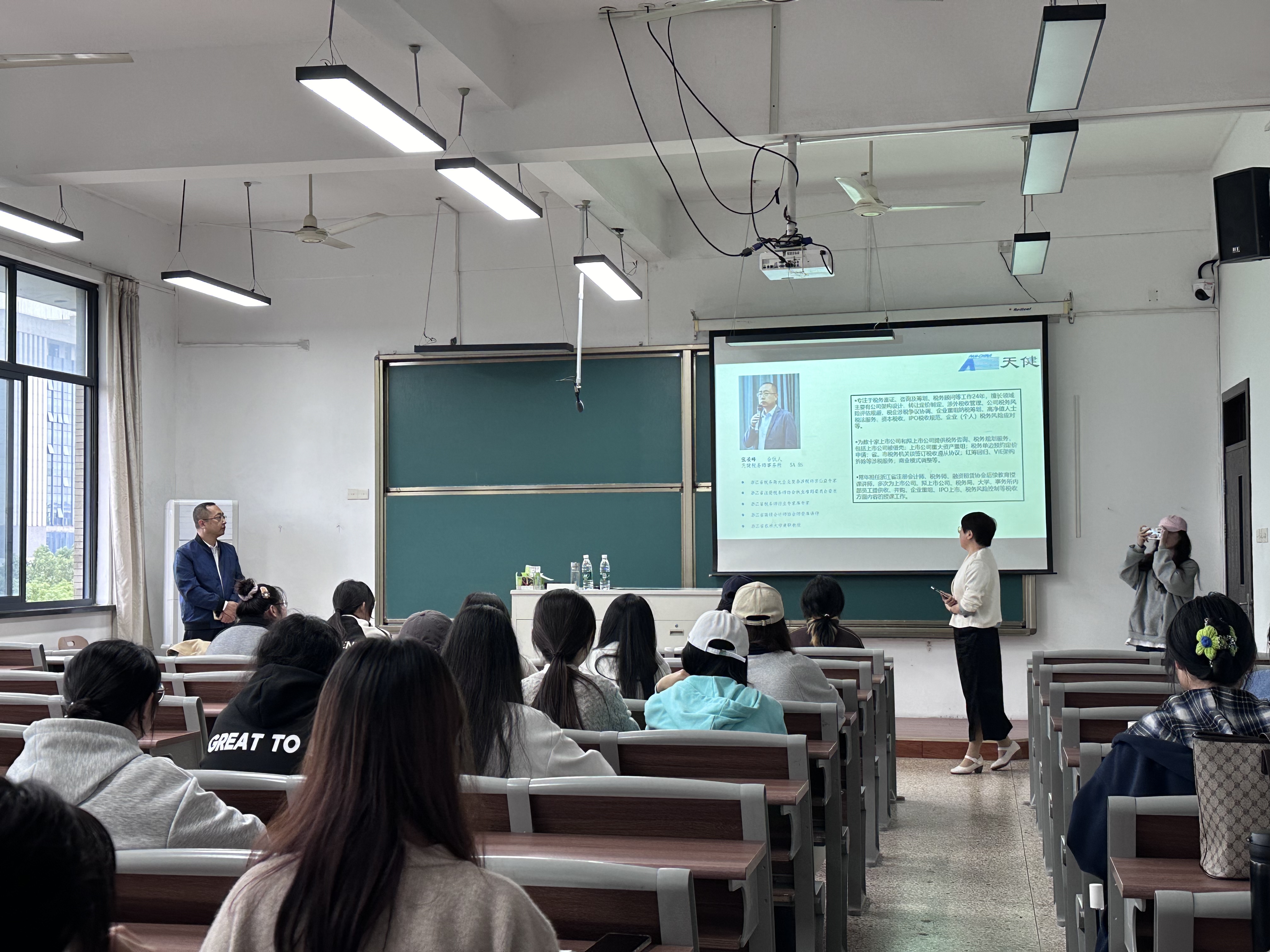 讲座开始,张老师以 “是否了解过什么是税务” 的问题活跃气氛,接着用幽默诙谐的语言阐释税收相关内容,为同学们打开税务知识之门。