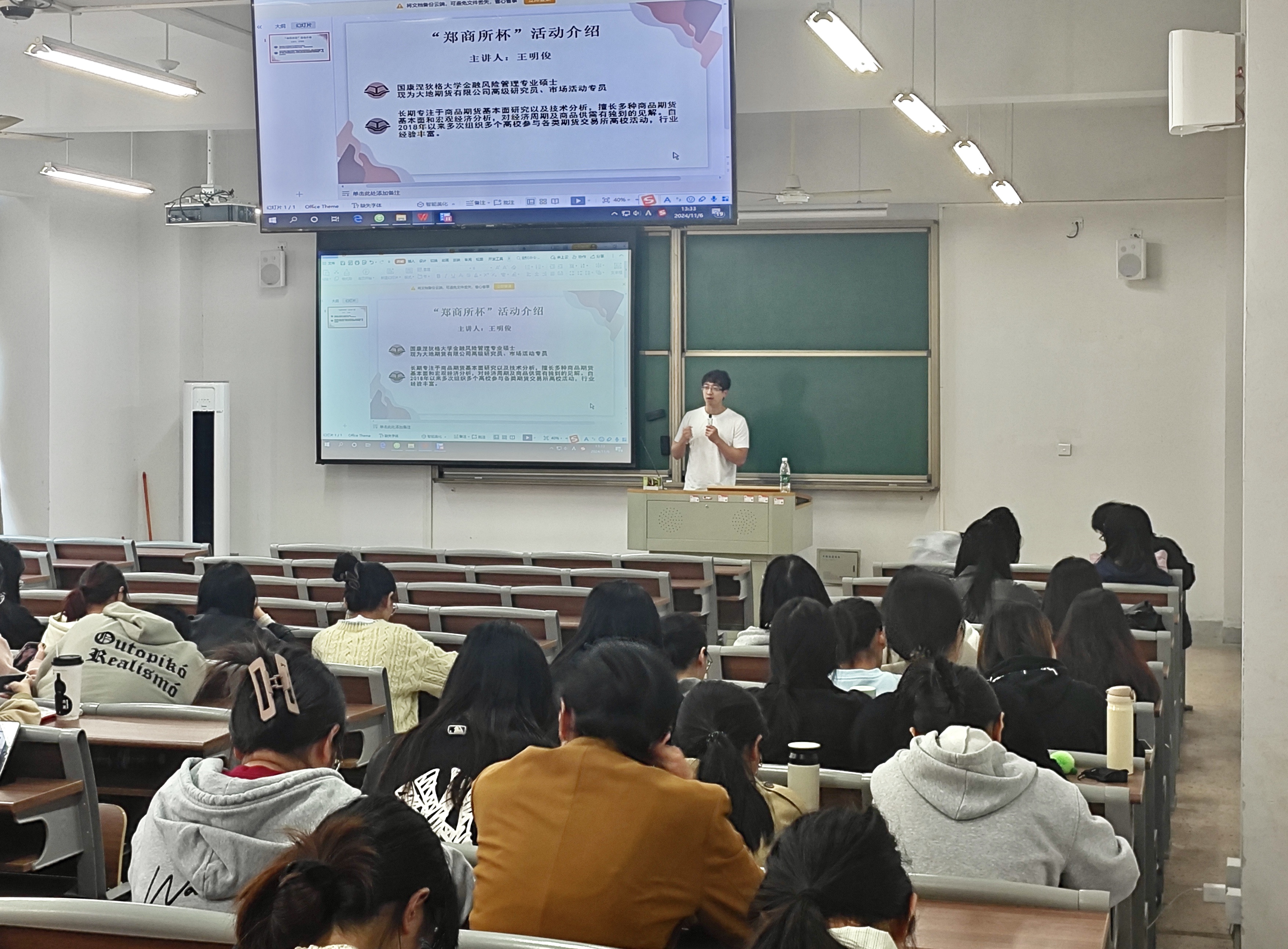 讲座上,王明俊老师便详细介绍了 “郑商所杯” 这一极具价值的大学生赛事。他着重强调,该赛事不仅是大学生积累丰富交易金融知识的宝库,更是深入领会交易能力及问题解决能力重要性的绝佳平台。更为关键的是,赛事为同学们开启了通往大型金融企业实习的大门,获奖选手将有机会收获宝贵的实习经历,为未来职业发展增添有力砝码。