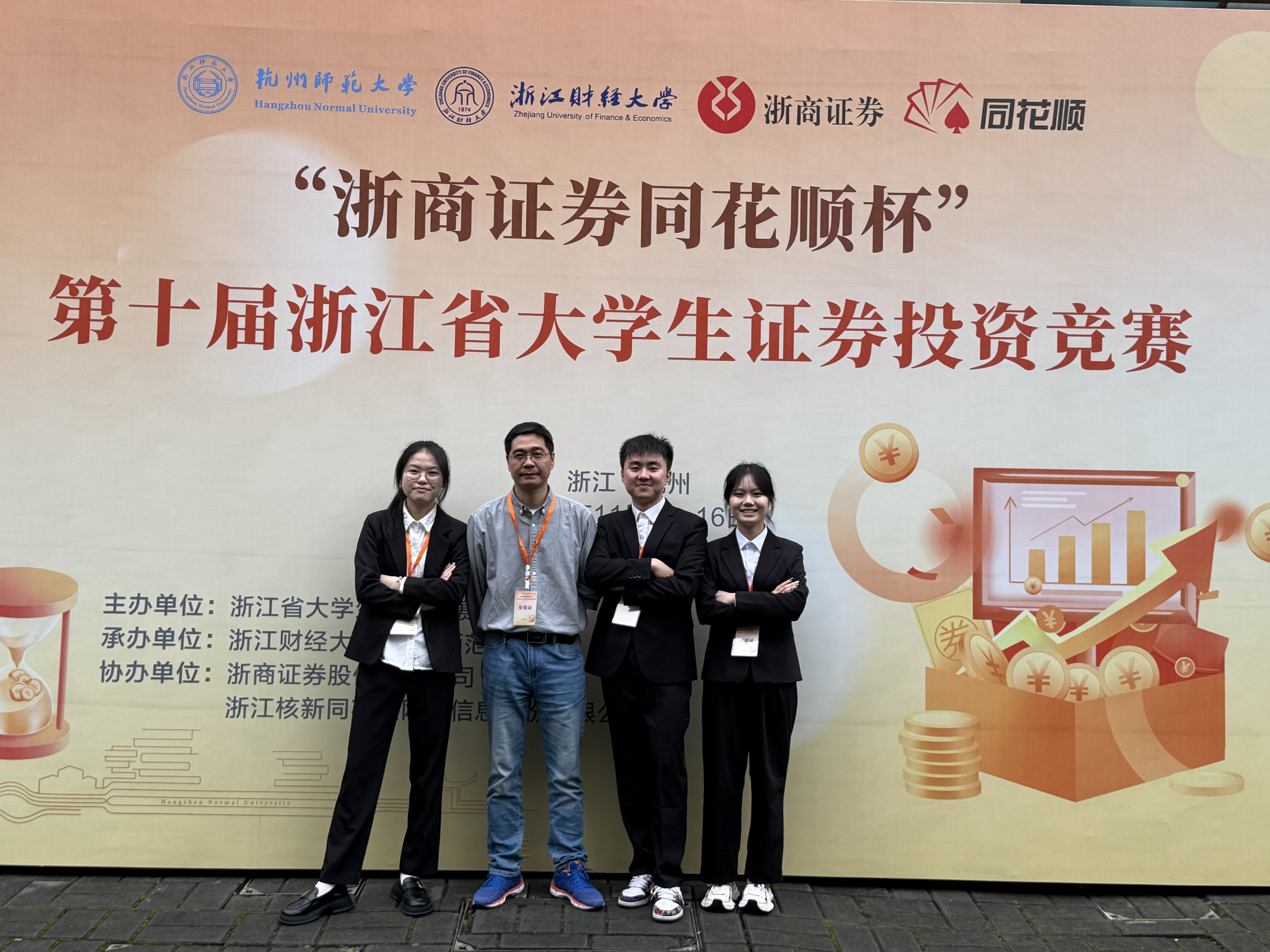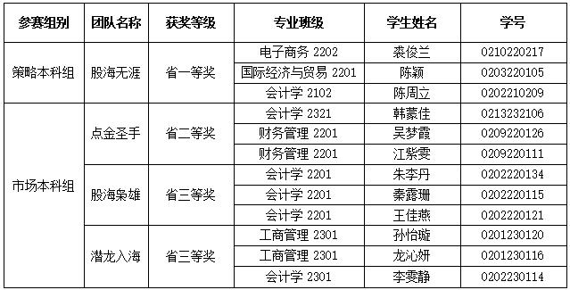 近日,由浙江省大学生科技竞赛委员会主办,浙江财经大学、浙江省大学生证券投资竞赛委员会承办,杭州师范大学、浙商证券股份有限公司、浙江核新同花顺网络信息股份有限公司协办的“浙商证券同花顺杯”第十届浙江省大学生证券投资竞赛决赛圆满落幕。第十届浙江省大学生证券投资竞赛共有全省78所学校的1312支团队参赛,本项竞赛从5月份开始,为期7个月左右的时间,竞赛队伍经过初赛、复赛、决赛、答辩等环节后,我院4支队伍荣获省一等奖1项、省二等奖1项,省三等奖2项。具体获奖名单如下:
