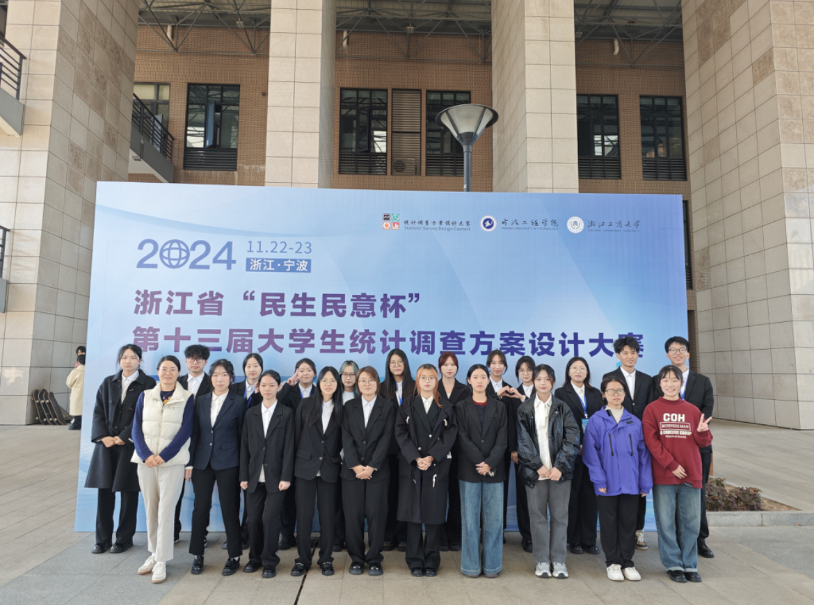 11月23日浙江省“民生民意杯”第十三届大学生统计调查方案设计大赛决赛在宁波工程学院圆满落下帷幕。本次竞赛由浙江省教育厅、浙江省统计局联合指导,浙江工商大学、宁波工程学院共同承办。大赛共有来自全省79所学校的643支队伍参加,我院共12支队伍参赛,调研主题体现社会热点,涵盖了隐形加班、养老、老旧小区改造、城市书房建设等领域。参赛队伍从确定选题、设计问卷、实地调研、撰写报告、到决赛答辩,历时7个多月,最终有10支队伍获得省级奖项,获奖率达83.3%。