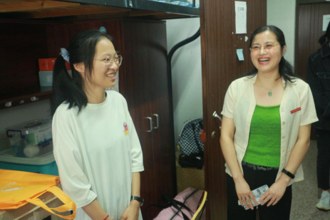 在走访过程中,沈院长也表示,学生宿舍是同学们在校期间学习和生活的重要场所,是学校育人的重要阵地,学校应该为学生提供整洁、舒适的生活环境,让同学们感受到家一样的温暖。她还贴心地叮嘱同学们要注意人身财产安全,营造一个良好、温馨的寝室氛围。
